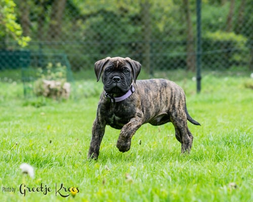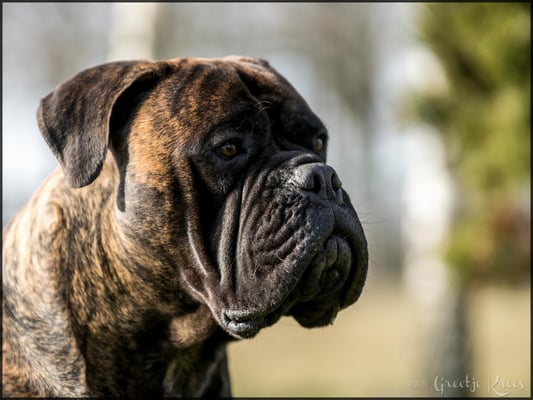 Omschrijving: Bear komt uit het eerste nestje van Blacky. Bear is met 8 maanden bij ons teruggekomen. Het is een hele lieve, mooie, vrolijke, sterke en onstuimige reu.