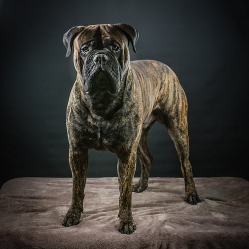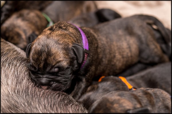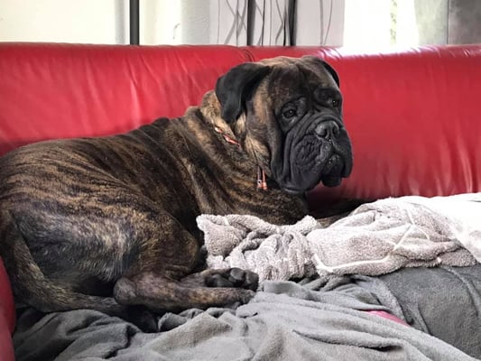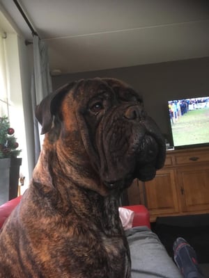 Bear wordt niet ingezet voor de fok en hebben we laten castreren. Hij ligt nu gezellig tussen de teefjes op de bank.