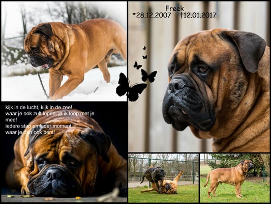 Onze speciale Freek. Onze 2e bullmastiff na Lana. Wat een speciale hond was hij, niet in woorden uit te drukken. Hij was ons absolute uithangbordje van onze kennel. Of mensen nu van honden