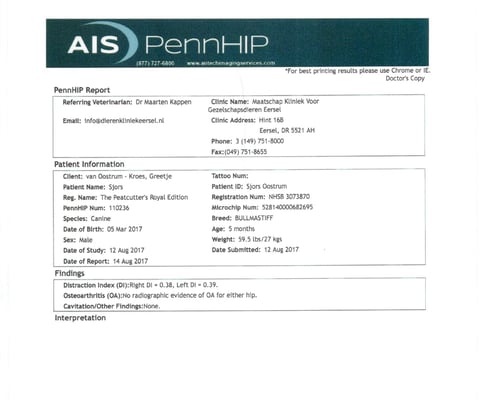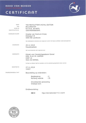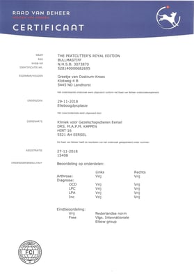 Sjors his official hip and elbow results with the photos. X-rayed at 20 months of age. HD-C, ED-0.