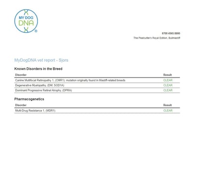 my dog dna: MFE-clear, CMR1 clear, DM SOD1A clear, DPRA clear, MDR1 clear, Long hair-clear, red mask-clear